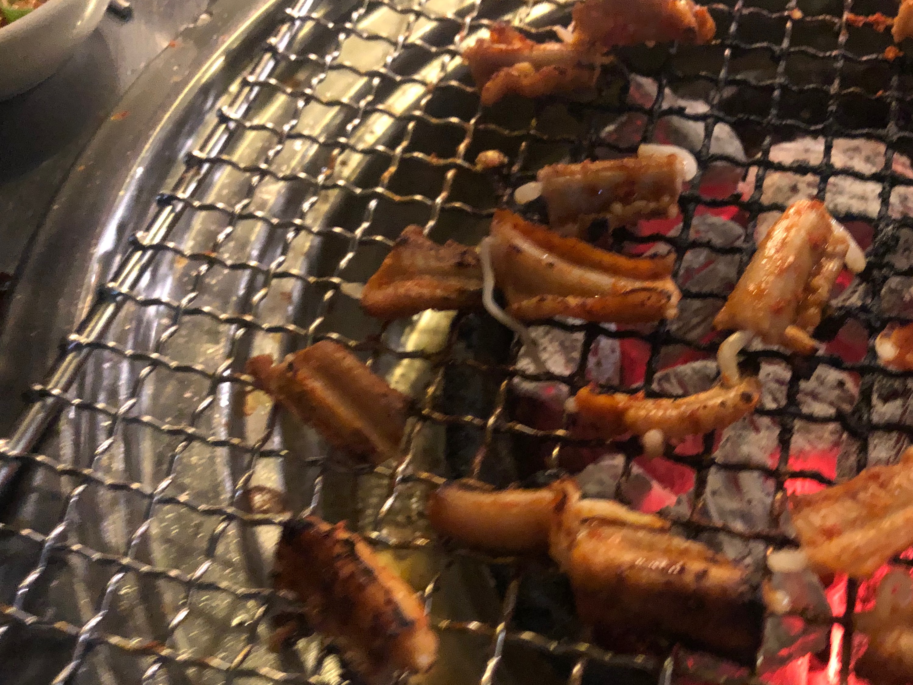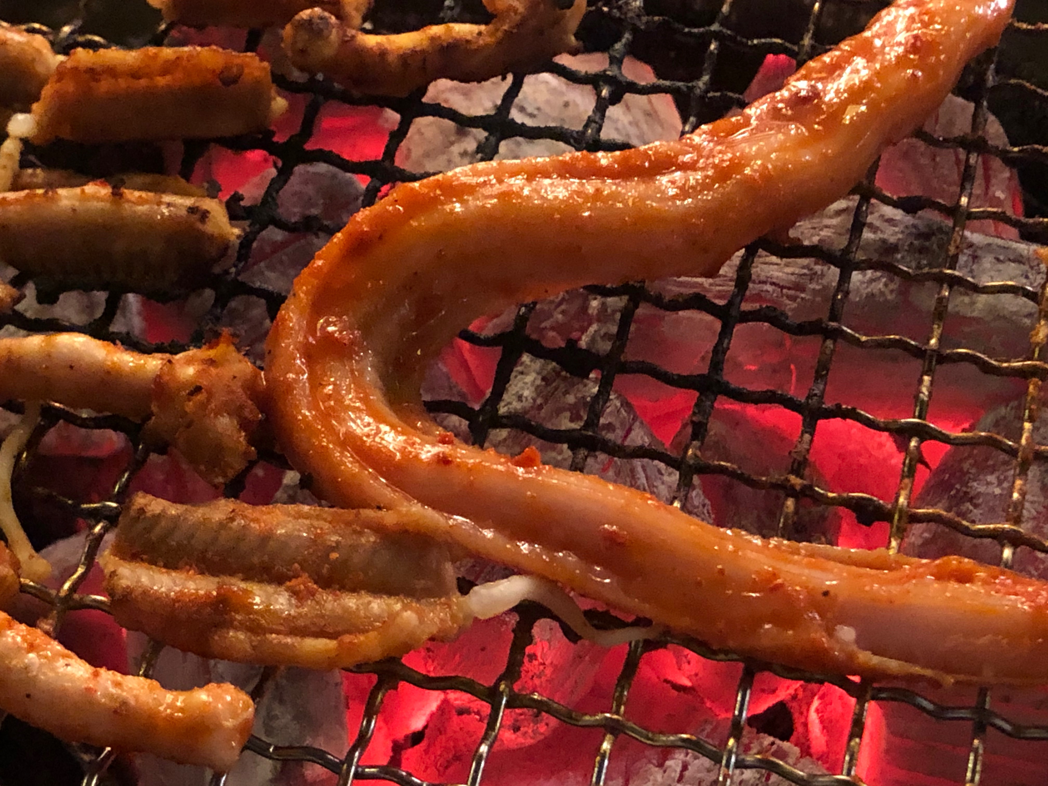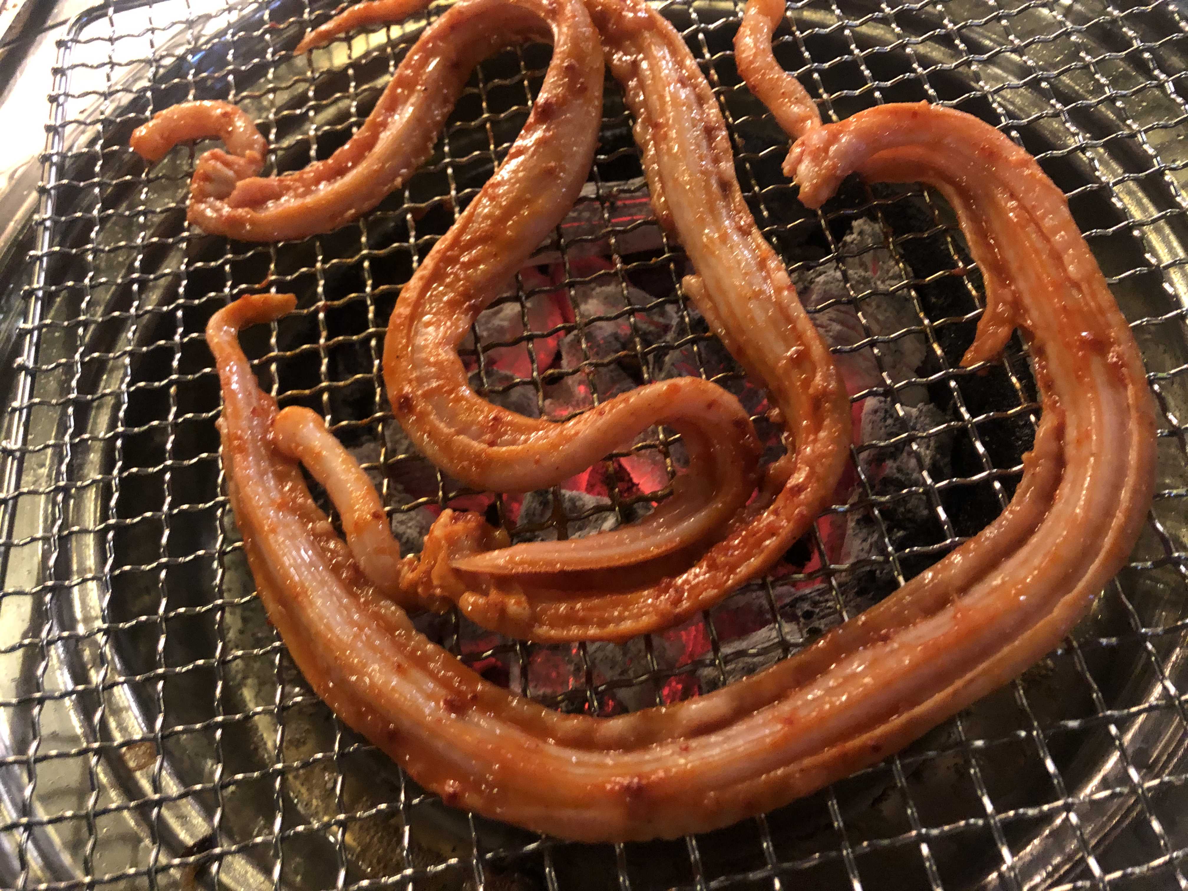 껍질을 벗겨낸 채로 빨간양념을 해서 제가 먹은 것처럼 숯불로 굽거나